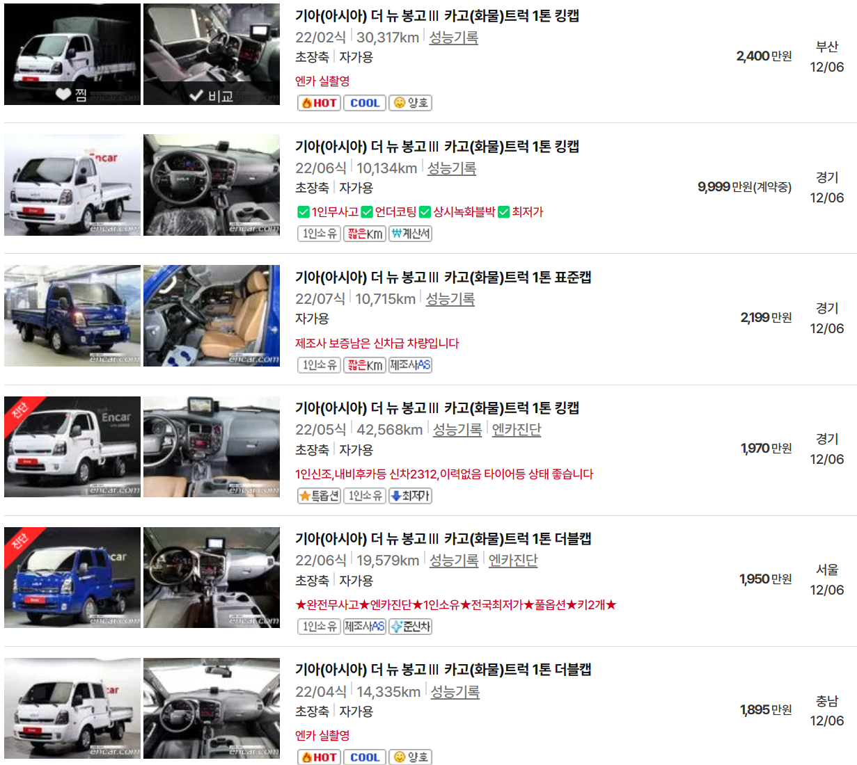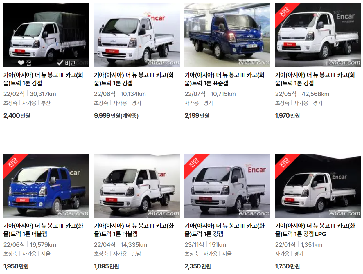물론 봉고3 차량이 워낙 인기 있는 차량으로 무늬만 중고차인 신차급 차량도 있기 때문에 빠른 출고를 원한다면 신차급 중고차량도 좋은 선택입니다.