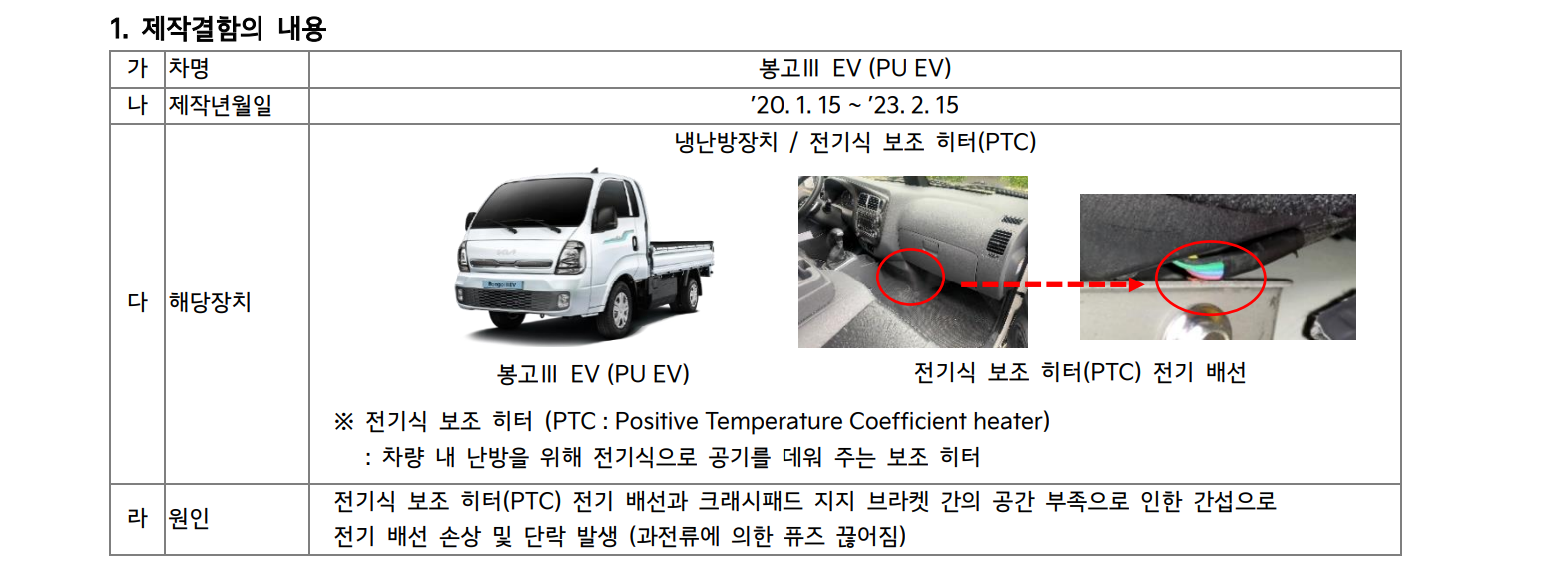봉고3 결함 리콜 정보