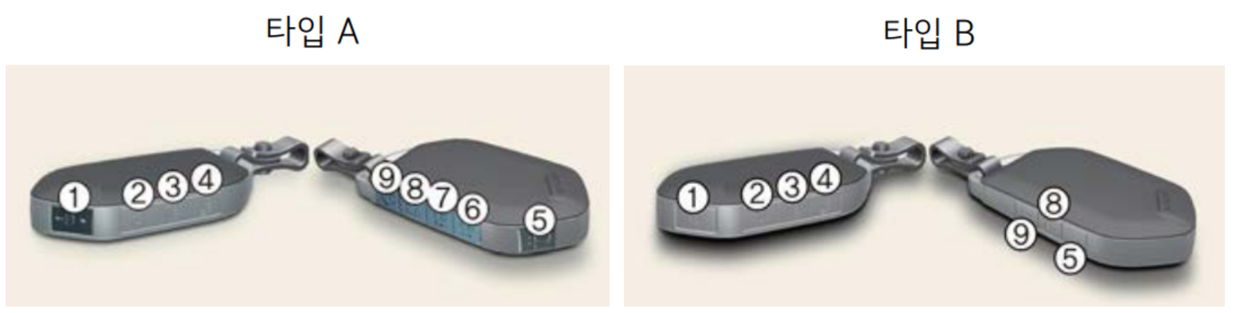 또한 가열하는 등 부적절한 취급을 삼가며, 내부 회로 가 손상되어 스마트키가 오작동할 수 있고 이 경우에는 보증수리를 받을 수 없습니 다.