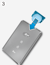 1. 카드형 스마트키 건전지부를 손으로 당겨 분리하며, 건전지 커버를 분리할 때 스크루 드라이버를 사용 및 무리한 힘으로 분리할 경우 커버 및 키에 손상을 줄 수 있습니다.