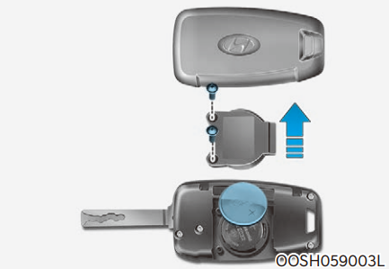 스마트 키 커버를 분리할 때는 분리에 적합 한 공구를 사용합니다. 그렇지 않으면 스마트키 커버가 파손 또는 흠집이 날 수 있습니다.